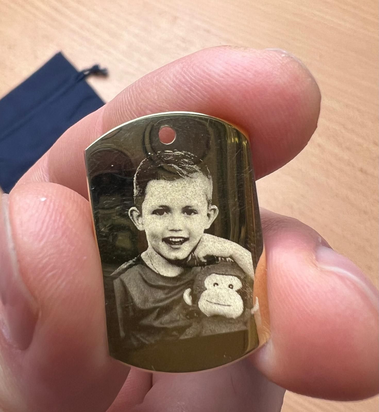 "Felix" Anhänger aus Gold mit Fotogravur für Kette.